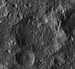 Neujmin is a lunar impact crater on the Moon's far side. It is nearly attached to the west-southwest of the smaller crater Waterman, and lies to the southwest of the prominent Tsiolkovskiy.