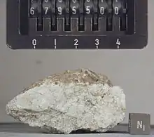 | 67455 | rock | ![]() | breccia | Very friable, white polymict feldspathic breccia |