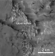 - Layered sulfate-bearing unit, include poly-hydrated sulfates and jarosite;