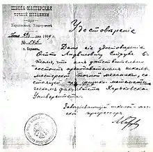 Struve entered the Kharkiv University in 1915, at the time of political unrest and wars in Russia. In the beginning of 1916, just having finished the first semester, he interrupted his studies and enlisted to a military artillery school in St. Petersburg. He passed an accelerated training program, and in February 1917, was sent to the Turkish front. After the Treaty of Brest-Litovsk was signed, Struve returned to Kharkiv for a year between spring 1918 and spring 1919 and completed a full university course. in June 1919, he received a certificate signed by the rector of Kharkiv University stating that Struve would stay with the university to prepare for professorship at the department of astronomy and geodesics. During that time, Struve also worked at the "workshop school of precision mechanics" and obtained a license of a workshop trainer. The workshop was organized by his father with the goal of creating traditions of astronomy engineers in Russia. Those were non-existent and foreign engineers were personally invited from abroad for high-quality mechanical work.[5][8]