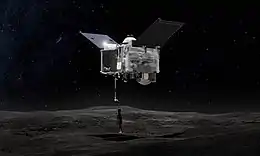 OSIRIS-REx[lower-alpha 1] was a NASA asteroid-study and sample-return mission that visited and collected samples from 101955 Bennu, a carbonaceous near-Earth asteroid.[14] The material, returned in September 2023, is expected to enable scientists to learn more about the formation and evolution of the Solar System, its initial stages of planet formation, and the source of organic compounds that led to the formation of life on Earth.[15] Following the completion of the primary OSIRIS-REx (Regolith Explorer) mission, the spacecraft is planned to conduct a flyby of asteroid 99942 Apophis, now as OSIRIS-APEX (Apophis Explorer).[16]