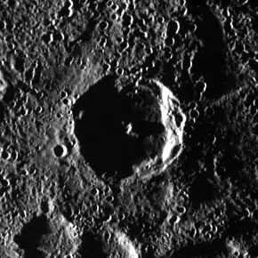 Petőfi is a crater on Mercury, near the south pole. Its name was adopted by the International Astronomical Union in 2013, after the Hungarian poet Sándor Petőfi,[1] following the official convention of naming craters on Mercury after historically significant artists, musicians, painters, and authors.[2]