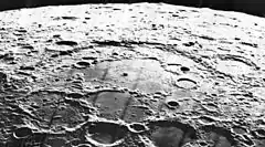 Poincaré is a large lunar impact basin that lies in the southern hemisphere on the far side of the Moon. Most of the formation has been heavily eroded by subsequent impacts, leaving a battered formation with only rugged remnants of the original outer rim to the west.