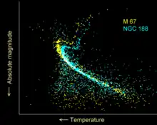 HR diagram showing the main sequence turnoff of NGC 188 and M 67, indicating their relatively high ages