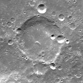 Prandtl is an impact crater on the far side of the Moon. It lies across the southeastern outer rim of the huge walled plain Planck.