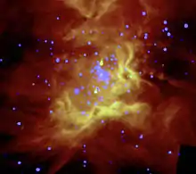 The young star CXOANC J085932.2−434602 was observed by the Chandra X-ray Observatory to have produced a large flare with a peak temperature greater than 100 million kelvins.[30] Such "super hot" flares from young stars have been seen in other star-forming regions like the Orion Nebula.[31]