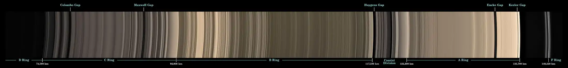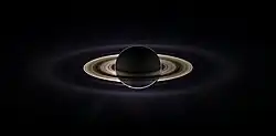 ![]() Saturn and its prominent rings, as captured by the Cassini orbiter[lower-alpha 1] | |||||||||||||