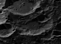 By convention these features are identified on lunar maps by placing the letter on the side of the crater midpoint that is closest to Schlesinger.