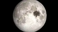 On February 20, 1965, the Ranger 8 spacecraft was deliberately crashed into the Mare Tranquillitatis at 2.6377°N 24.7881°E after successfully transmitting 7,137 close-range photographs of the Moon in the final 23 minutes of its mission.[7][8]