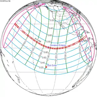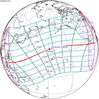 - The midpoint of the eclipse being near the subsolar point (the part of Earth closest to the Sun).