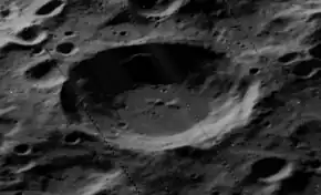 Timiryazev is a lunar impact crater that is located just to the east of the huge walled plain Korolev, on the far side of the Moon. It lies to the west-northwest of the crater Sechenov and north-northeast of Mechnikov.