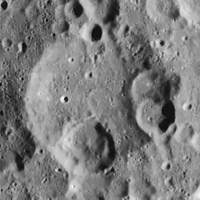 Vega is an eroded lunar impact crater that is located in the southeastern part of the Moon. It lies on the near side and so can be viewed from the Earth. Less than one crater diameter to the east-southeast is the slightly smaller Peirescius. About one and a half crater diameters to the west is the long Vallis Rheita.