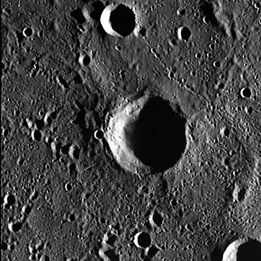 Vonnegut is a crater on Mercury, near the north pole. It was named by the IAU in 2017 after the American author Kurt Vonnegut.[1] Part of Vonnegut's 1959 novel The Sirens of Titan takes place on Mercury. The crater was referred to as e5 in scientific literature prior to naming.[2]