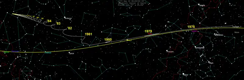 | 1977-12-19 | Voyager 1 overtakes Voyager 2. (see diagram) |