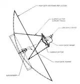 The Attitude and Articulation Control Subsystem (AACS) controls the spacecraft orientation (its attitude). It keeps the high-gain antenna pointing towards the Earth, controls attitude changes, and points the scan platform. The custom-built AACS systems on both Voyagers are the same.[28][29]