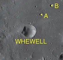 ![]() Whewell crater, northeast is its satellite crater Whewell A | |