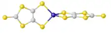 Structure of the anion [Zn(dmit)2]2-, featuring two 1,3-dithiole-4,5-dithiolate ligands complexed to zinc.[2]