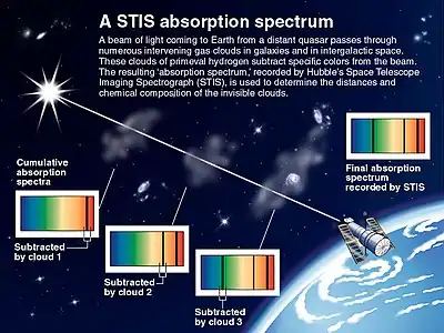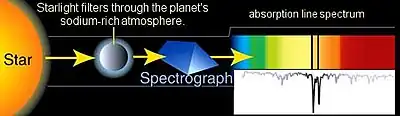 Astronomical spectroscopy is a particularly significant type of remote spectral sensing. In this case, the objects and samples of interest are so distant from earth that electromagnetic radiation is the only means available to measure them. Astronomical spectra contain both absorption and emission spectral information. Absorption spectroscopy has been particularly important for understanding interstellar clouds and determining that some of them contain molecules. Absorption spectroscopy is also employed in the study of extrasolar planets. Detection of extrasolar planets by transit photometry also measures their absorption spectrum and allows for the determination of the planet's atmospheric composition,[7] temperature, pressure, and scale height, and hence allows also for the determination of the planet's mass.[8]