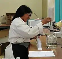 Acid–base titration is particularly valuable in quantifying acidic or basic functional groups with pharmaceutical compounds. Additionally, the method is employed for the analysis of additives or ingredients, making it easier to adjust and control how a product is made.[21] Quality control laboratories utilize acid-base titration to assess the purity of raw materials and to monitor various stages of drug manufacturing processes.[21]
