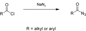 Alkyl or aryl acyl chlorides react with sodium azide to give acyl azides.[2][3]