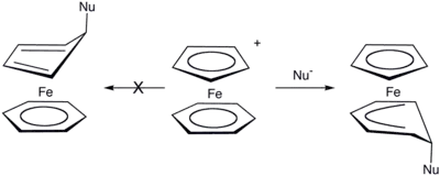 Nucleophiles preferentially add to even-hapticity polyene ligands at a terminus.[1] Nucleophiles add to odd-hapticity acyclic polyene ligands at a terminal position if the metal is highly electrophilic, otherwise they add at an internal site.