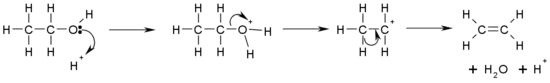 This is a diagram of acid catalyzed dehydration of ethanol to produce ethylene: