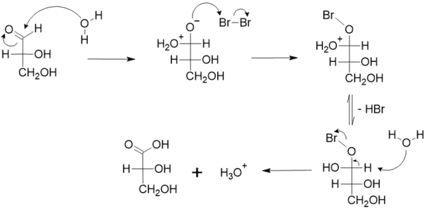 Alternatively, they arise by homologation of an aldose using the Strecker reaction.[5] Cyanide in ammonia reacts with an aldose to produce an intermediate, which is then reacted with a hydronium ion to form an aldonic acid.