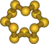 | cyclo-S6 | ρ-sulfur | cyclo-hexasulfur, "ε-sulfur", "Engel's" sulfur, "Aten's sulfur" | The ring adopts a chair form in the solid.[5] |