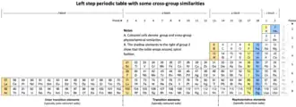 - 1927 — LeRoy's table: Left step precursor; three sets of transition elements[64]