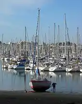 In the 1960s and 1970s, commercial vessels commonly used bottom paints containing tributyltin, which has been banned in the International Convention on the Control of Harmful Anti-fouling Systems on Ships of the International Maritime Organization due to its serious toxic effects on marine life (such as the collapse of a French shellfish fishery).[15] Now that tributyltin has been banned, the most commonly used anti-fouling bottom paints are copper-based. Copper-based antifouling paints can also have adverse effects on marine organisms. Copper occurs naturally in aquatic systems but can build up in ports or marinas where there are lots of boats. Copper can leach out of anti-fouling paint from the hulls of the boats or fall off the hulls in different sized paint particles. This can lead to higher-than-normal concentrations of copper in the ports or bays.