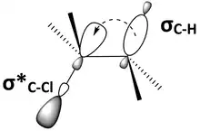 ![]() Figure 6: The C–H bonding orbital is aligned with the anti-bonding orbital of C–Cl and can donate into the anti-bonding orbital through hyperconjugation. |