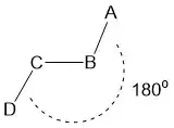 ![]() Figure 3: Representation of a strictly anti-coplanar conformation. A, B, C, and D are in the same plane and the dihedral angle between A–B and C–D is 180°. |