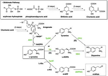 - Tzin V, Galili G (2010-05-17). "The Biosynthetic Pathways for Shikimate and Aromatic Amino Acids in Arabidopsis thaliana". The Arabidopsis Book. 8: e0132. doi:10.1199/tab.0132. PMC 3244902. PMID 22303258.