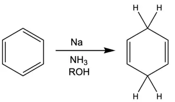 In dearomatization reactions the aromaticity of the reactant is lost. In this regard, the dearomatization is related to hydrogenation. A classic approach is Birch reduction. The methodology is used in synthesis.[27]