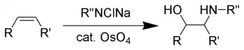 - Sharpless, K. Barry; Patrick, Donald W.; Truesdale, Larry K.; Biller, Scott A. (1975). "New reaction. Stereospecific vicinal oxyamination of olefins by alkyl imido osmium compounds". Journal of the American Chemical Society. 97 (8): 2305–2307. doi:10.1021/ja00841a071.
