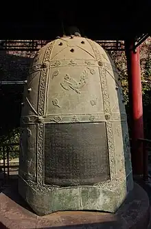 The Jingyun bell, cast in 711, weighing 6,500 kg, originally from the bell tower at the Tang dynasty capital Chang'an