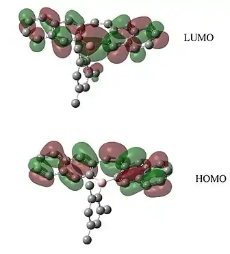 Borepins are of interest due to their Lewis acidity. Density functional theory (DFT) calculations have shown that the HOMO of borepin lies mostly with the carbon moieties of the seven-membered ring, while the LUMO is centered around the boron atom.[3][5] An example of the HOMO/LUMO distribution can be seen in the figure below.