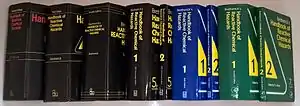In 1964, research chemist Leslie Bretherick read of a violent explosion in a laboratory, and knew that the same journal had reported a similar incident with the same chemicals 16 years earlier.[1] Realising that there was no central source of literature on dangerous chemical reactions, he set out to create one, combing through the literature in his spare time. In 1971 his employers (BP) allowed him to do this in half his work time[2] and a book was published in 1975 entitled Handbook of Reactive Chemical Hazards.[3] The work involved creating what was effectively a database on paper of substances and literature references, arranged by empirical formula, and converting this into a book. This was well received as “an invaluable reference work” [4] One reviewer wrote ““Bretherick” (the name under which this book must surely become known)”.[5] A revised second edition followed in 1979, with a reviewer stating “that “Bretherick” is an essential first reference”[6] As well as corrections and additional reactions, this contained a new section dealing with groups of compounds and some other matters. A third edition followed in 1985, Bretherick having retired in 1982 in order to work full-time on the project.[2][7] In the preface to the 4th edition (1989) he announced that his eyesight was failing.[8] As a result, he did not contribute new material to further editions, which was done by others. The 5th edition (1995) was edited by Peter G. Urben and as the book was larger, was split into two volumes. Leslie Bretherick died in April 2003[9] The 6th edition (1999), the 7th edition (2007) and the 8th edition (2017) were also edited by Urben.