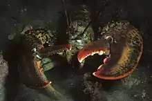 Many marine organisms use pheromones to find mates. For example, male sea lampreys attract ovulating females by emitting a bile that can be detected many meters downstream.[15] Other processes can be more complex, such as the mating habits of crabs. Due to the fact that female crabs can only mate during a short period after moults from her shell, female crabs produces pheromones before she begins to moult in order to attract a mate. Male crabs will detect these pheromones and defend their potential mate until she has finished molted. However, due to the cannibalistic tendencies of crabs, the female produces an additional pheromone to suppresses cannibalistic instincts in her male guardian. These pheromones are very potent—so much so that they can induce male crabs to try to copulate with rocks or sponges that have been coated in pheromone by researchers.[16]