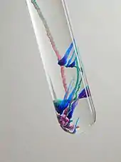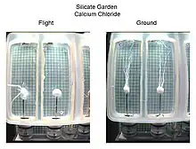 A chemical garden is a set of complex biological-looking structures created by mixing inorganic chemicals. This experiment in chemistry is usually performed by adding metal salts, such as copper sulfate or cobalt(II) chloride, to an aqueous solution of sodium silicate (otherwise known as waterglass). This results in the growth of plant-like forms in minutes to hours.[1][2][3][4]