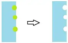 Conductive polymers such as polyaniline and polypyrrole can be used as sensing materials when the target interacts directly with the polymer chain resulting in a change in conductivity of the polymer.[8][48] These types of systems lack selectivity due to the wide range of target molecules that can interact with the polymer. Molecularly imprinted polymers can add selectivity to conductive polymer chemiresistors.[49] A molecularly imprinted polymer is made by polymerizing a polymer around a target molecule and then removing the target molecule from the polymer leaving behind cavities matching the size and shape of the target molecule.[48][49] Molecularly imprinting the conductive polymer increases the sensitivity of the chemiresistor by selecting for the target's general size and shape as well as its ability to interact with the chain of the conductive polymer.[49]