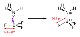 It is generally true, however, that bonds depicted this way are polar covalent, sometimes strongly so, and some authors claim that there are genuine differences in the properties of a dative bond and electron-sharing bond and suggest that showing a dative bond is more appropriate in particular situations. As far back as 1989, Haaland characterized dative bonds as bonds that are (i) weak and long; (ii) with only a small degree of charge-transfer taking place during bond formation; and (iii) whose preferred mode of dissociation in the gas phase (or low ε inert solvent) is heterolytic rather than homolytic.[7] The ammonia-borane adduct (H3N → BH3) is given as a classic example: the bond is weak, with a dissociation energy of 31 kcal/mol (cf. 90 kcal/mol for ethane), and long, at 166 pm (cf. 153 pm for ethane), and the molecule possesses a dipole moment of 5.2 D that implies a transfer of only 0.2 e from nitrogen to boron. The heterolytic dissociation of H3N → BH3 is estimated to require 27 kcal/mol, confirming that heterolysis into ammonia and borane is more favorable than homolysis into radical cation and radical anion. However, aside from clear-cut examples, there is considerable dispute as to when a particular compound qualifies and, thus, the overall prevalence of dative bonding (with respect to an author's preferred definition). Computational chemists have suggested quantitative criteria to distinguish between the two "types" of bonding.[8][9][10]