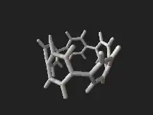A cycloparaphenylene is a molecule that consists of several benzene rings connected by covalent bonds in the para positions to form a hoop- or necklace-like structure. Its chemical formula is [C6H4]n or C