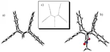 The symmetrical molecule [3.3]orthocyclophane, also known as janusene, is a cyclophane that contains 4 benzene rings in a cleft-shaped arrangement. First synthesized in 1967 by Stanley J. Cristol through the cycloaddition of anthracene and dibenzobarrelene,[22] the molecule has been used to study stacking and interactions between cations and pi orbitals, particularly with silver ions.[23] Derivatives and complexes of janusene have been created to study cation-pi interactions, transannular interactions in similar rigid aromatic molecules, and systems that depend on carbon-carbon distances.