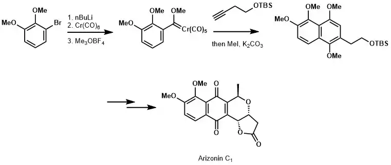 The Dötz reaction has been employed in thee syntheses of natural products, as illustrated below.[15] [16]