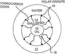 It combines a predominantly oil-soluble surfactant (such as polyethylene glycol mono-oleate) with a predominantly water-soluble surfactant (such as cocoamide) and a co-solvent for coupling a mixture of the predominantly oil-soluble surfactant and the oil.[2]