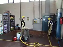 Dry ice can be used for loosening asphalt floor tiles or car sound deadening material, making them easy to prise off,[30] as well as freezing water in valveless pipes to enable repair.[31]
