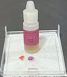 Ehrlich's reagent or Ehrlich reagent is a reagent containing p-dimethylaminobenzaldehyde (DMAB) and thus can act as an indicator to presumptively identify indoles and urobilinogen. Several Ehrlich tests use the reagent in a medical test; some are drug tests and others contribute to diagnosis of various diseases or adverse drug reactions. It is named after Nobel Prize winner Paul Ehrlich who used it to distinguish typhoid from simple diarrhoea.