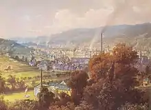 The Eisengarn manufacturing process was invented in the mid-19th century in a factory in Barmen, now part of the city of Wuppertal, east of the river Rhine.[2]