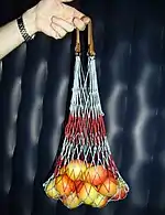A more prosaic use for the strong Eisengarn was, and still is, for making colourful string shopping bags, which were popular in the former East Germany, and are now an Ostalgie item.[8] When the bag is not in use, the nature of the Eisengarn enables it to be compressed so that it takes up very little space.[9]